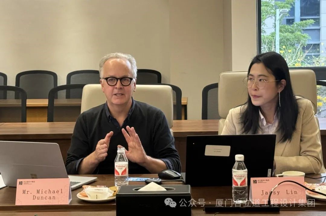 3月21日下午,SOM旧金山办公室设计合伙人Michael Duncan先生、Jassy Lin女士莅临合立道设计集团调研指导。合立道设计集团董事长兼总经理魏伟、公司首席总建筑师吕韶东、公司执行总建筑师林秋达、总经理助理刘雨寒、公司副总建筑师郭海蓬陪同调研并参与座谈。